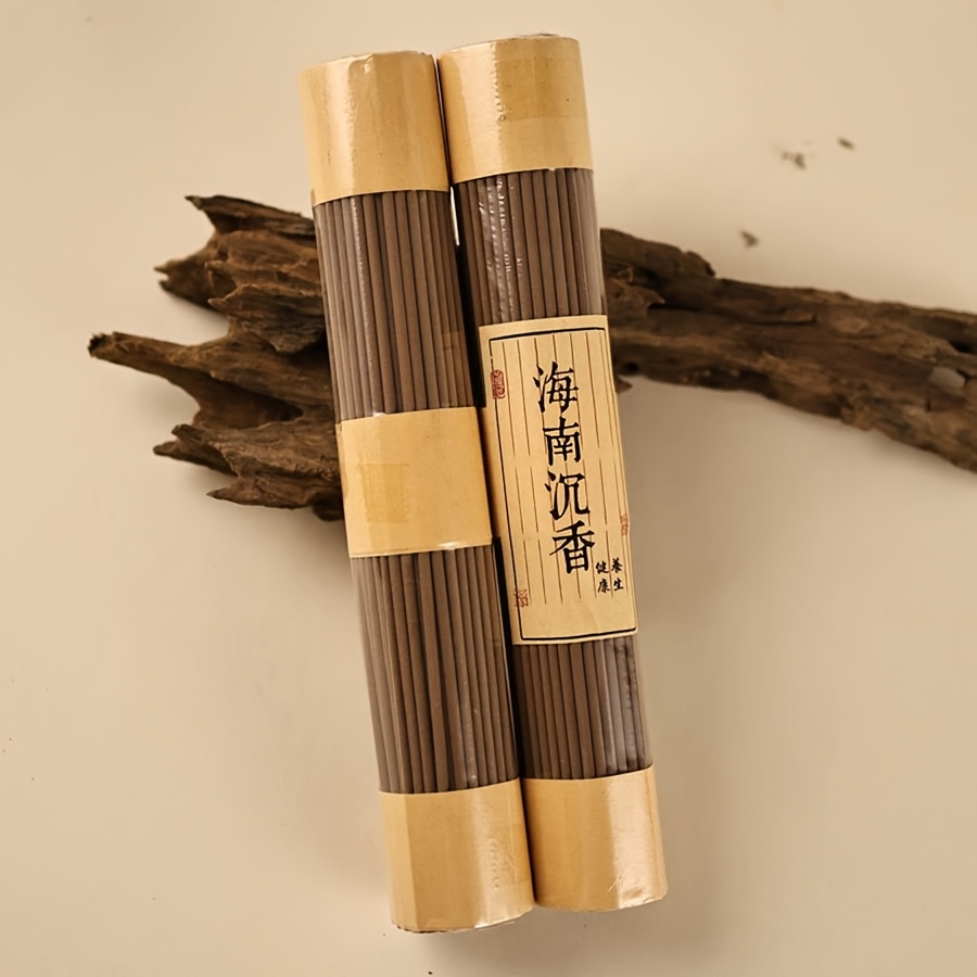 1 Ensemble, 250g, Bâtonnets d'encens naturels Hainan Agarwood 3.0cm épais – Pur et sans produits chimiques, sans parfum, saveur originale, épices de haute qualité faites à la main, temps de combustion de 2.5 heures, comprend un plateau à encens, idéal pou