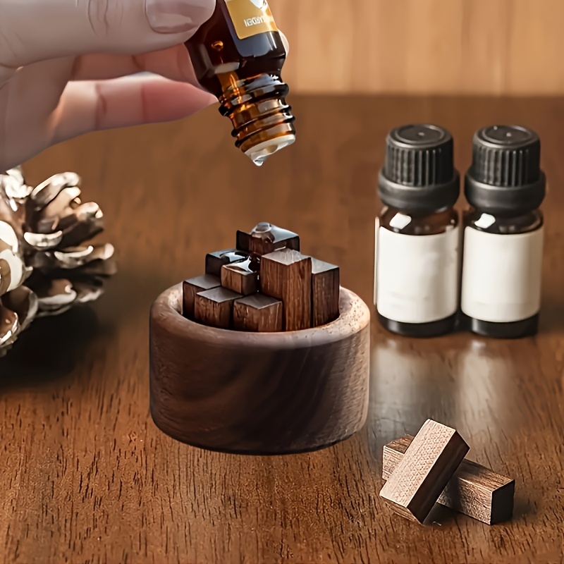 1 set Diffuseur d'huile de noyer noir, diffuseur aromatique en bois relaxant, diffuseur créatif, accessoires pour maison et voiture, décoration console centrale auto, produits en bois cylindriques, accessoire de bureau – Non électrique