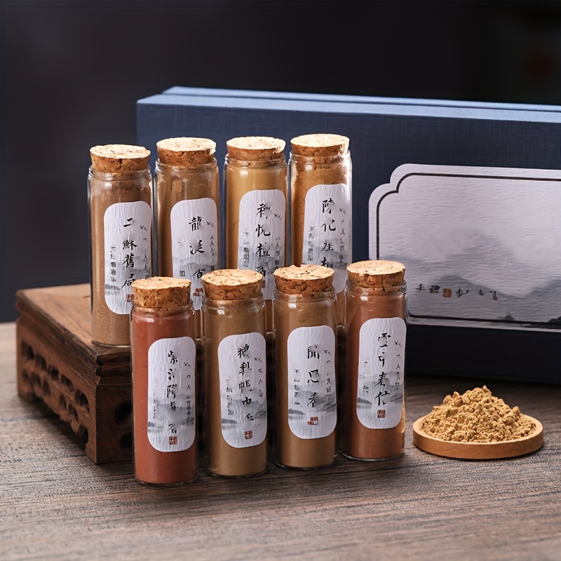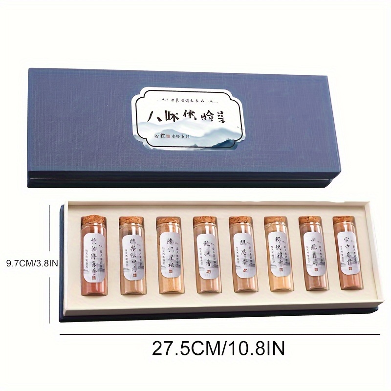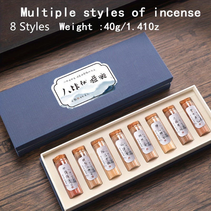 boîte de 8 poudres aromatisées totalisant 1.4oz, faites à la main avec un léger parfum, adaptées pour l'impression d'encens, brûleur d'encens électronique et autres, et très adaptées pour les rassemblements intérieurs, toilettes, yoga, méditation et loisi
