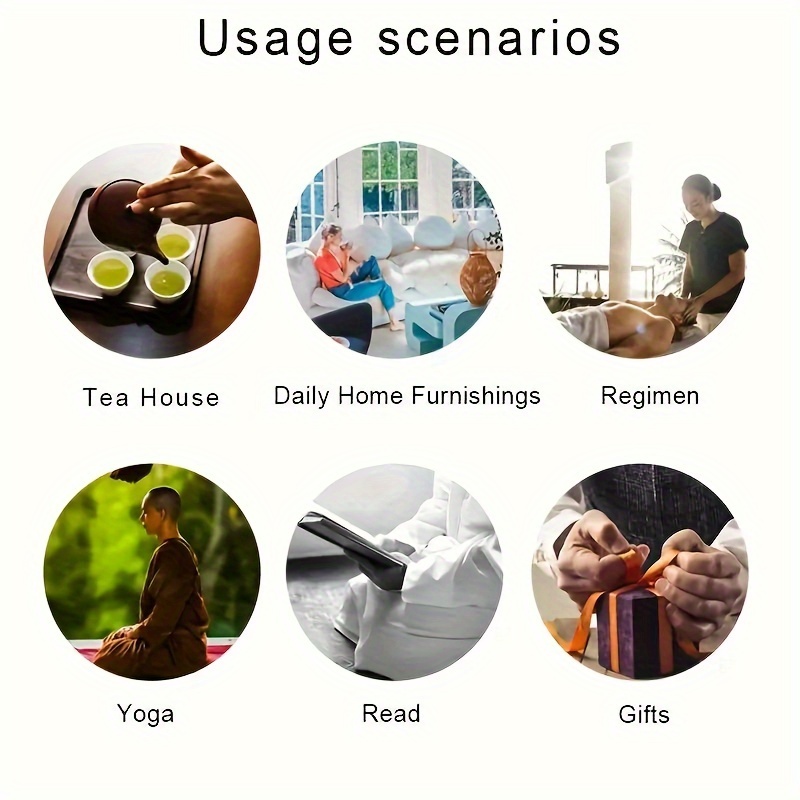 • Source de parfum: Huile essentielle liquide aromatique,Bois,Poudre d’encens, poudre de bois