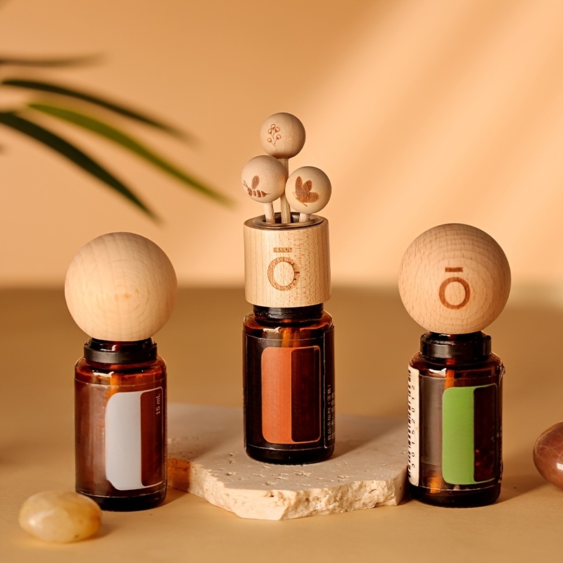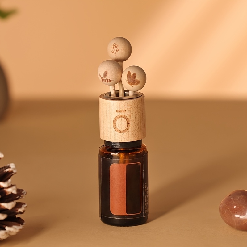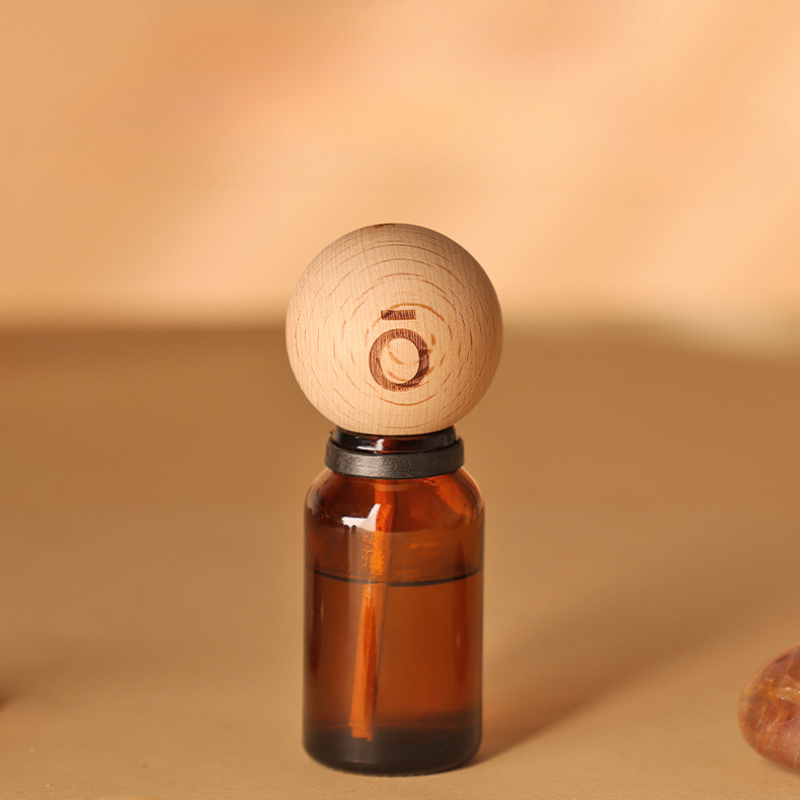 Boule Diffuseur d'Huile Essentielle en Bois Naturel – Parfum Longue Durée Sans Odeur, Boule Spatiale de Hêtre avec Couvercle et Base Supporte, Pas Besoin de Bouteille Rechargeable, Décoration Élégante pour Maison & Bureau Marron/Noir/Blanc/Vert/Naturel –