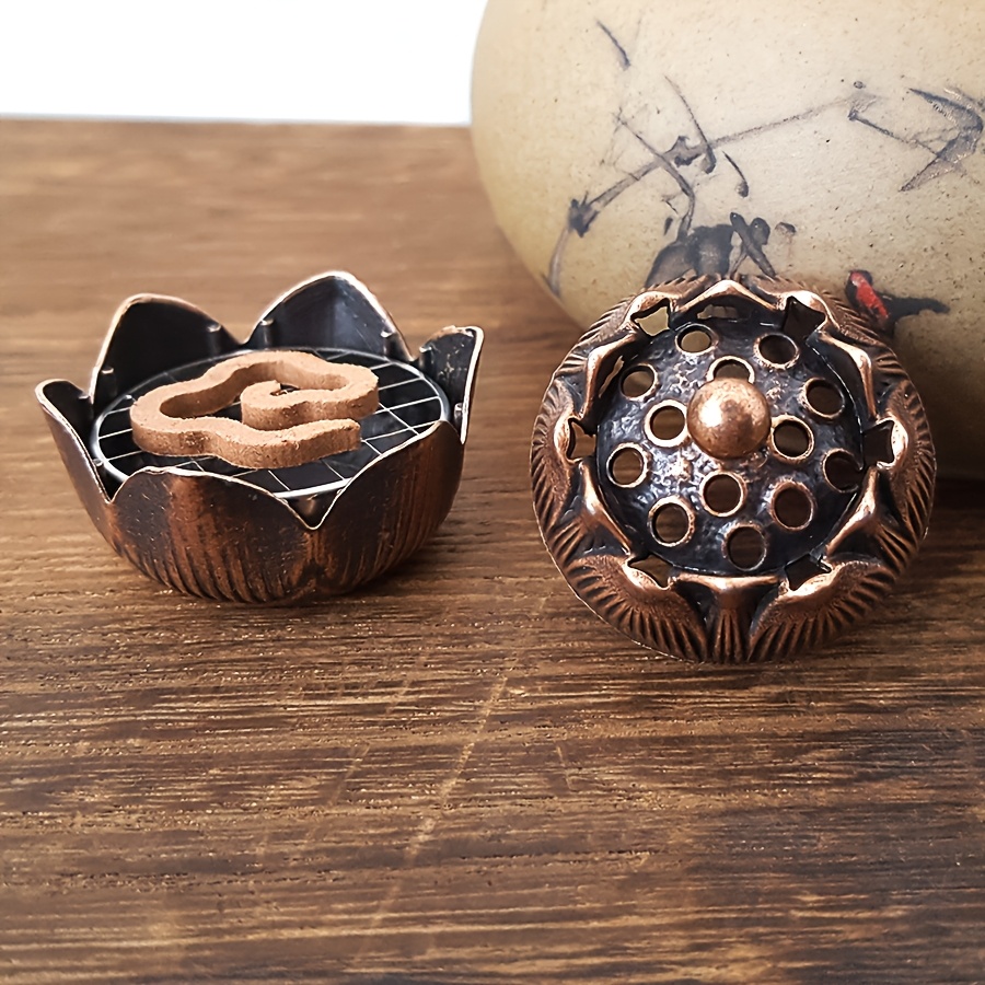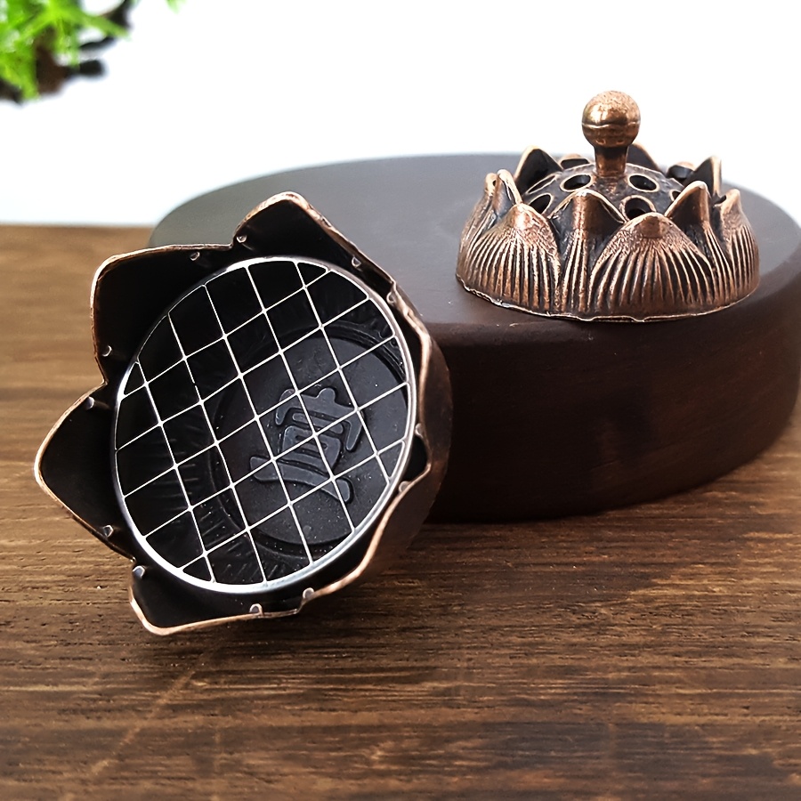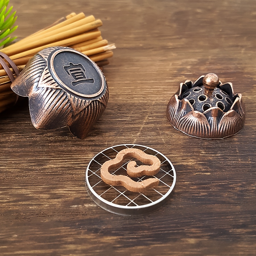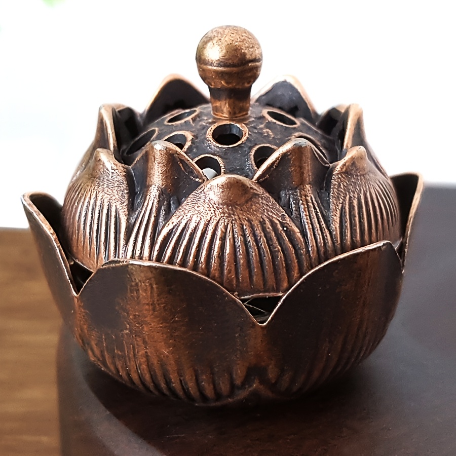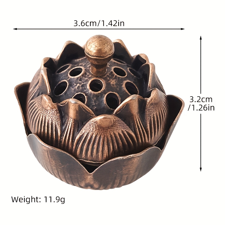 Brûleur d'Encens Élégant en Laiton pour Fleur de Lotus avec Écran en Maille – Métal Facile à Nettoyer, Idéal pour la Méditation, le Yoga Zen, la Décoration Intérieure & Extérieure, Porte-Bâton d'Encens