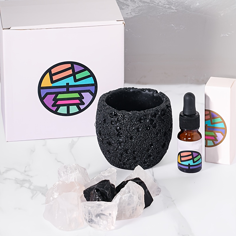 Diffuseur d'arômes sans flamme, pierre cristalline décorative, diffuseur d'huile, ensemble de pierres – huiles essentielles non incluses