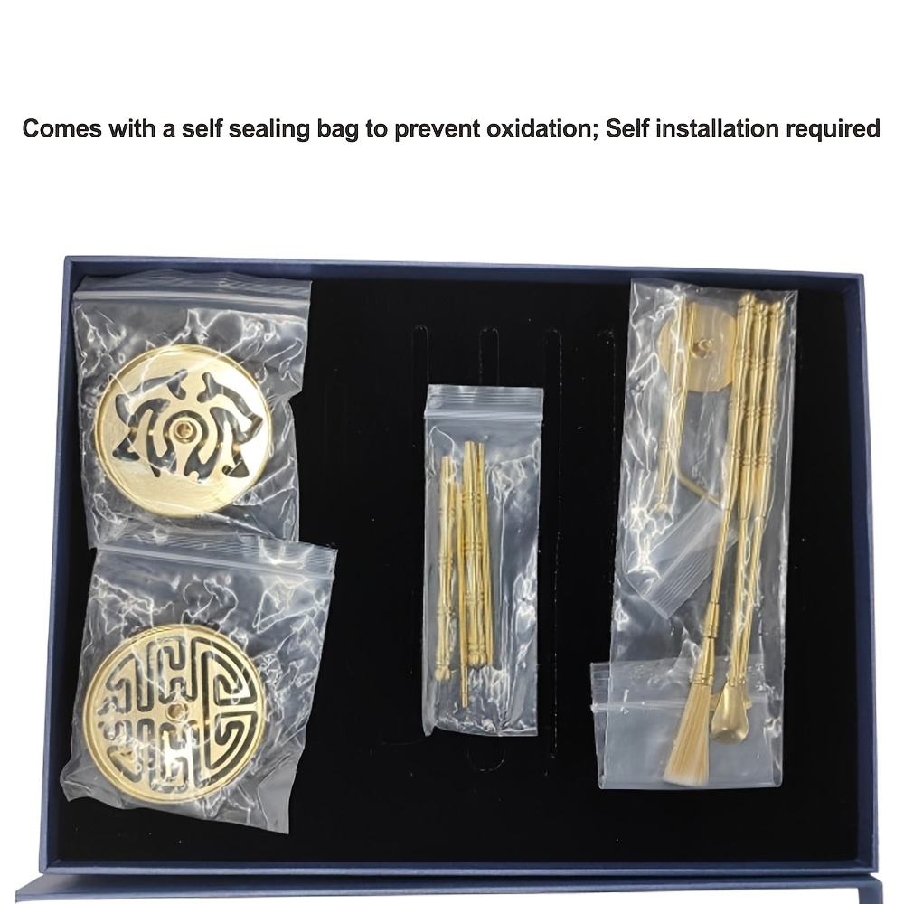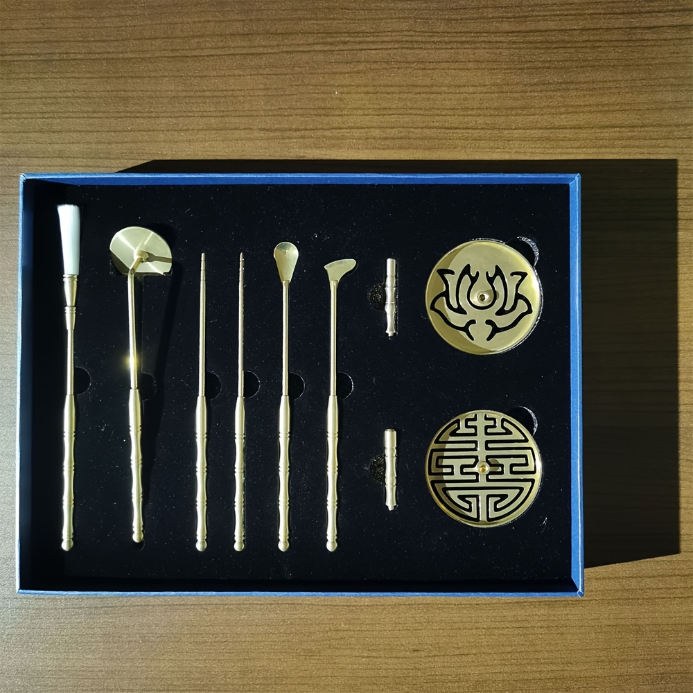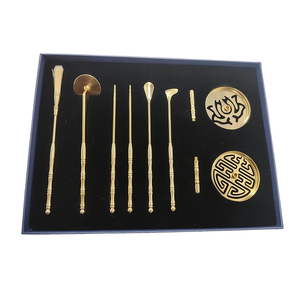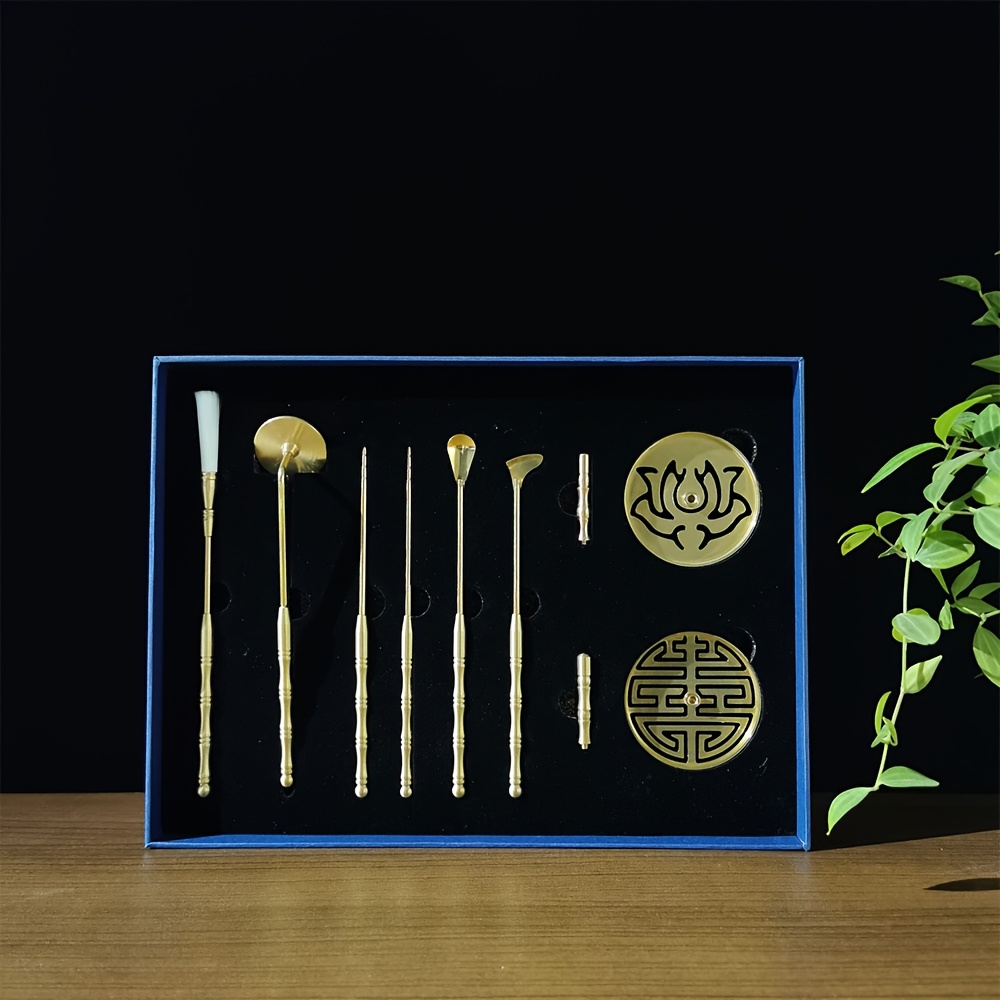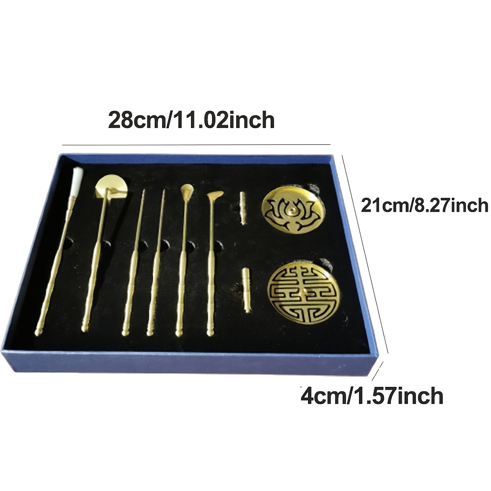 Ensemble de brûleurs à encens en laiton de luxe, kit complet avec support à encens, outils à épices et boîte de rangement, ensemble de cadeaux de décoration intérieure élégante, avec matériau en cuivre pour le yoga et la méditation.