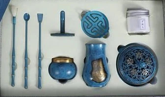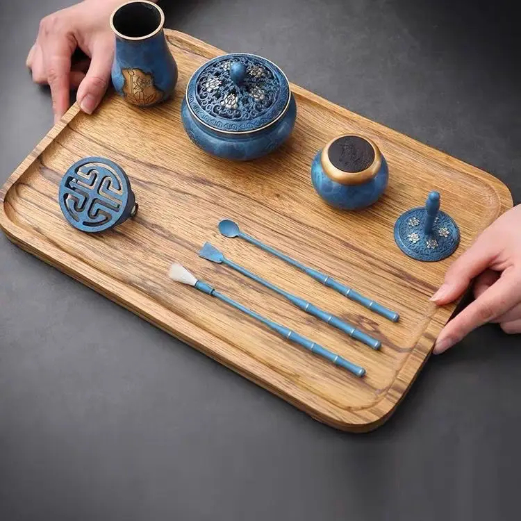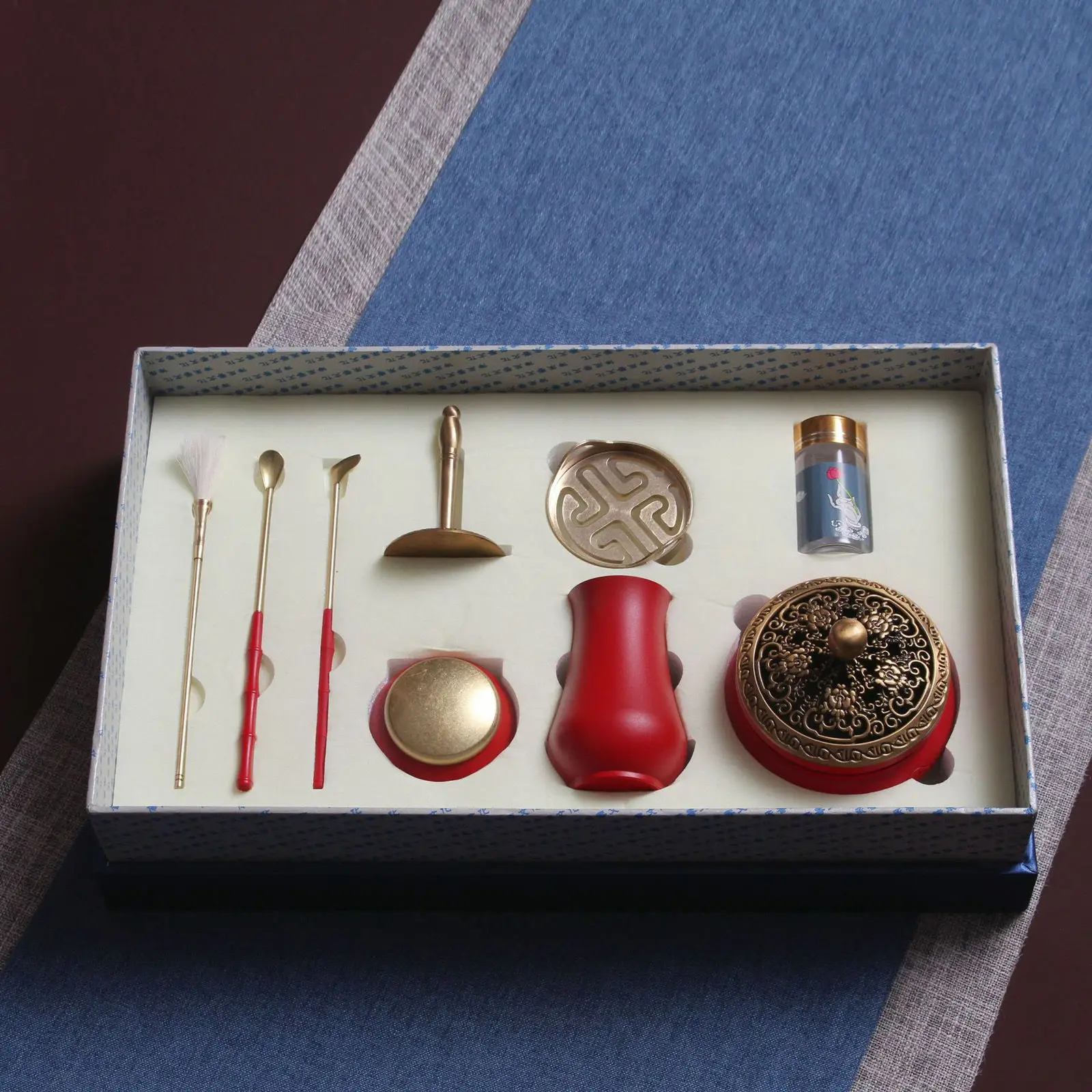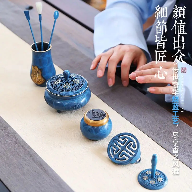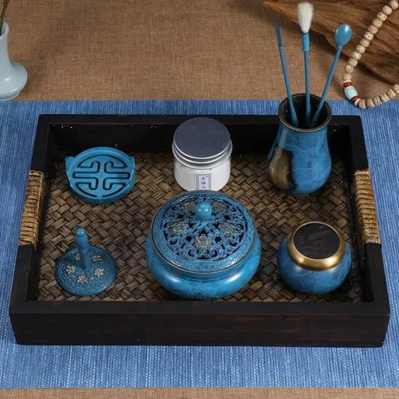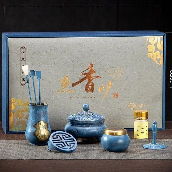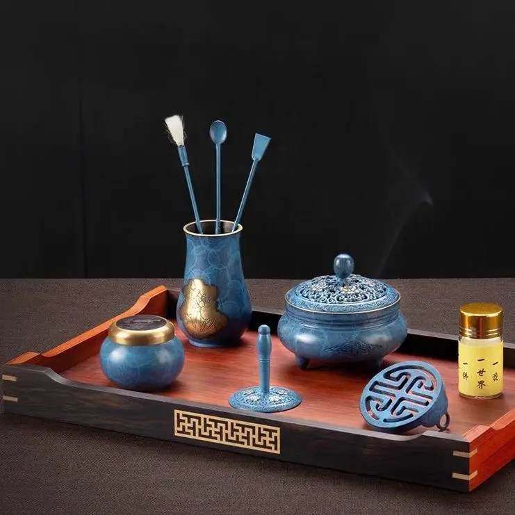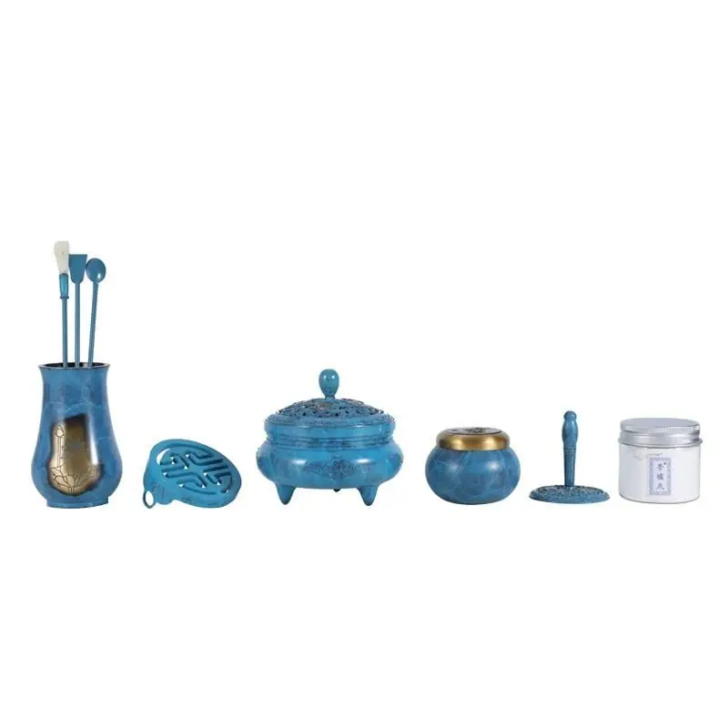 Ensemble d’Outils pour Cérémonie d’Encens en Cuivre Pur : Scellé à Encens, Ensemble de Scellement, Brûleur d’Encens Bleu, Frappe du Scellé, Fumoir à Encens