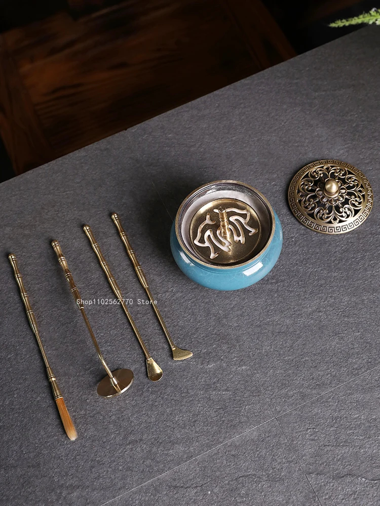 Ensemble Cadeau d’Outils pour Encens en Cuivre Pur : Scellé à Encens, Coffret Cadeau pour Maison, Bureau ou Salon de Thé, Fournitures pour Cérémonie du Thé, Extension et Matières Premières pour Encens