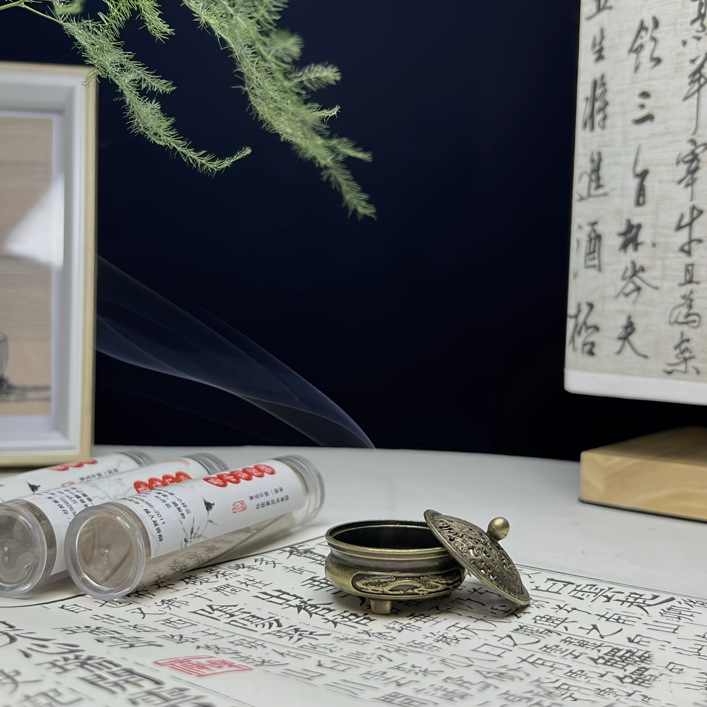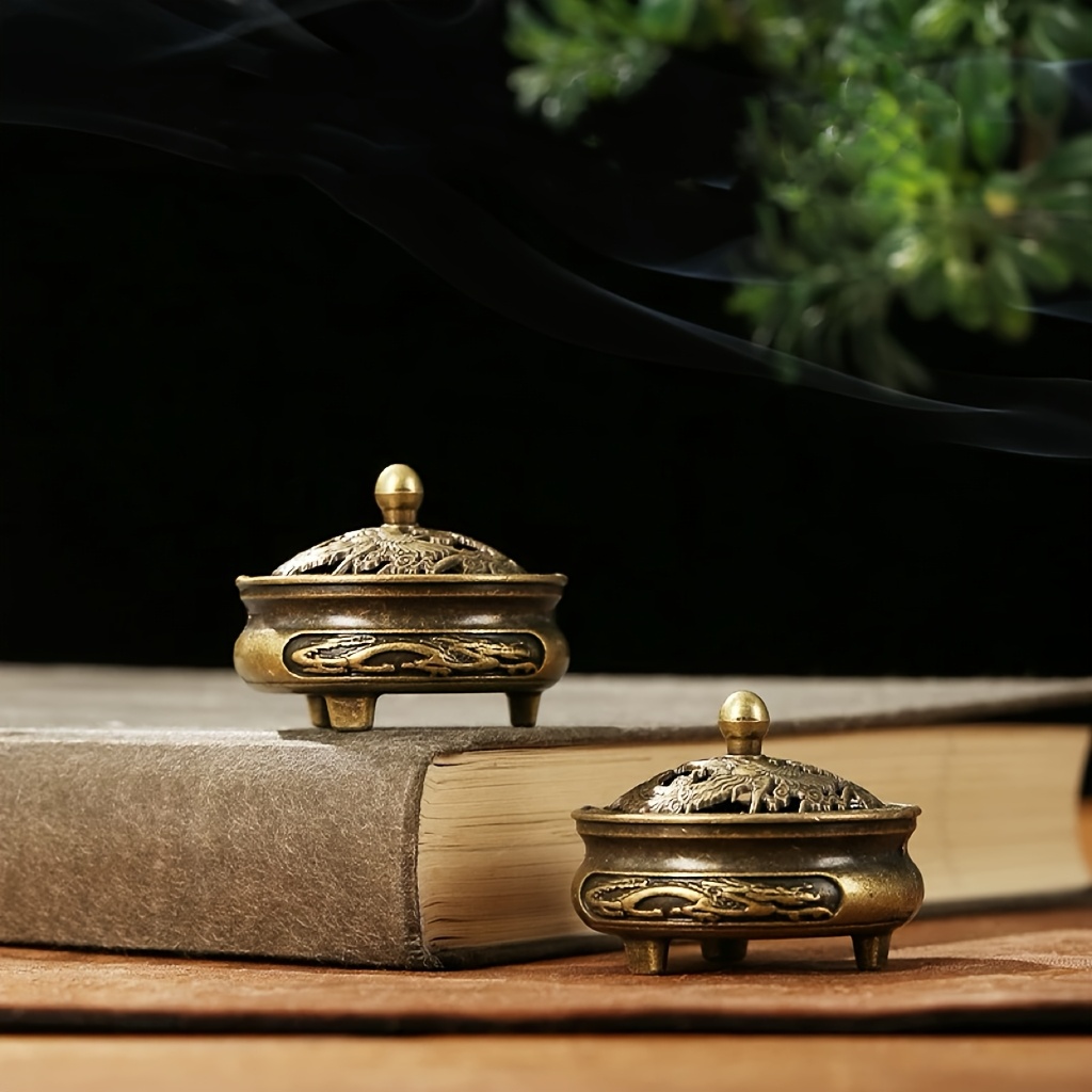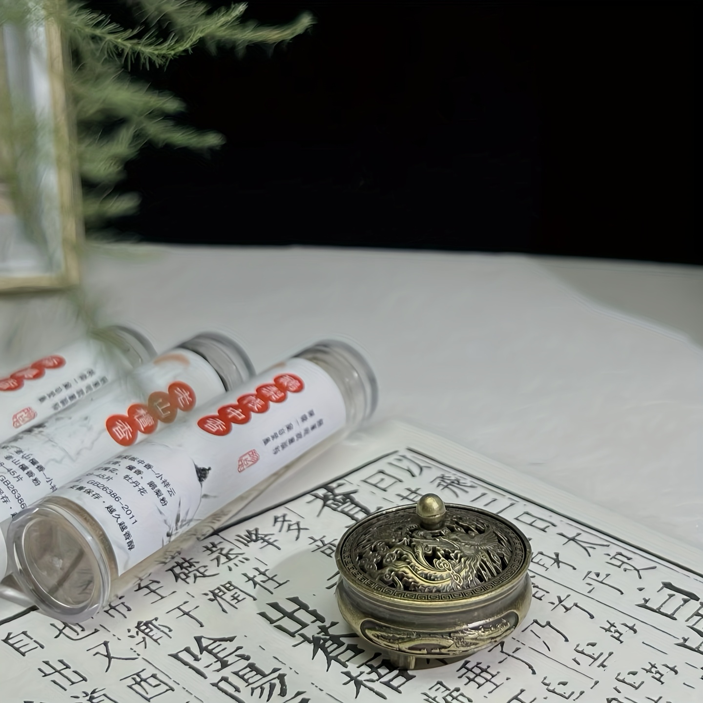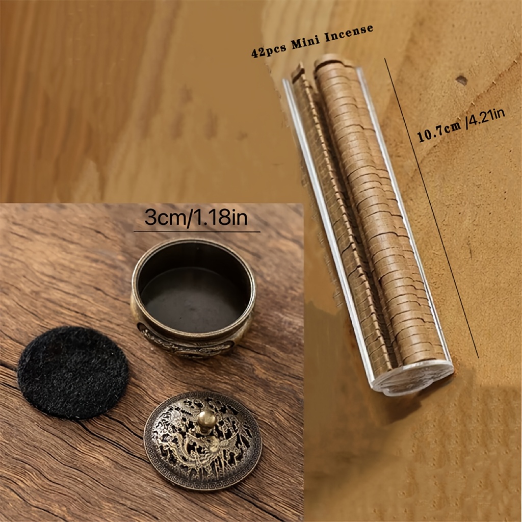 Un ensemble d'environ 42 morceaux d'encens de santal et un brüleur d'encens en alliage de cuivre de haute qualité, présentant un design de dragon et de phénix. Convient pour les bureaux décoration, les cérémonies du thé à la maison, et les méditations en