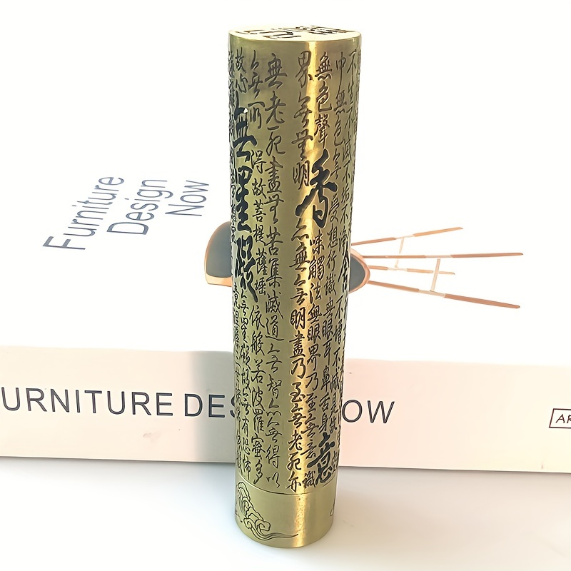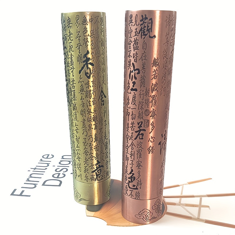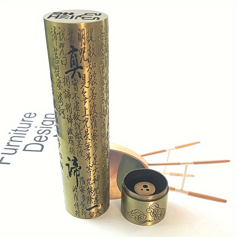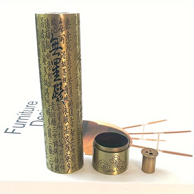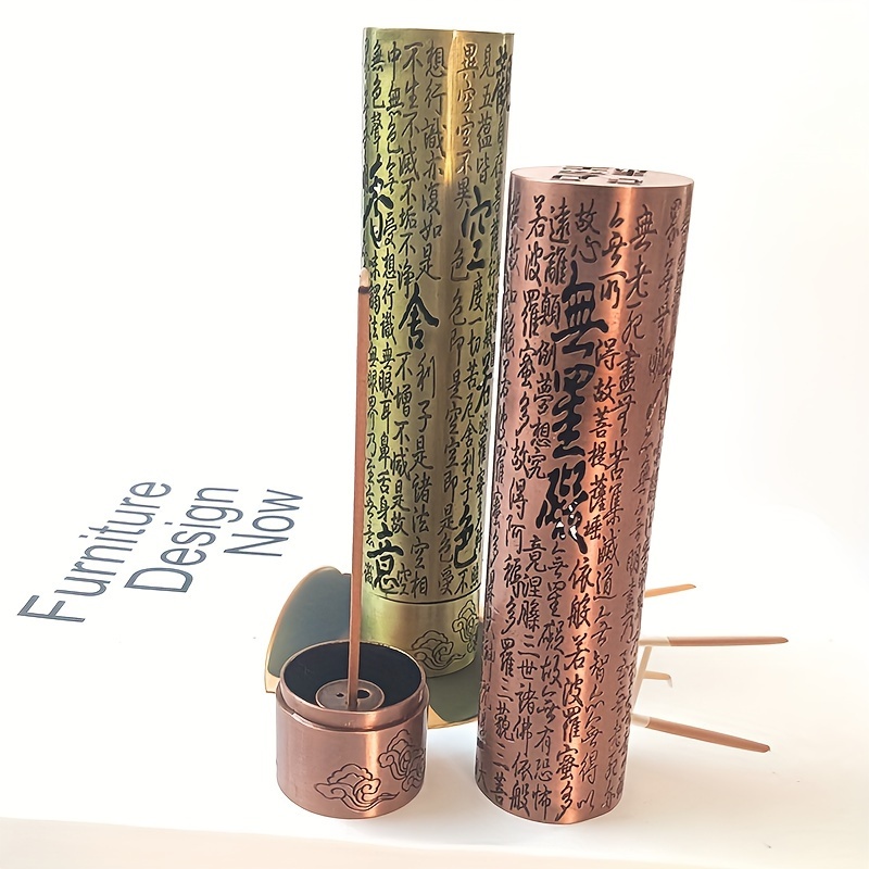 Un nouveau style de brûleur d'encens avec le Sutra du Cœur, en alliage avec une esthétique zen, adapté à une utilisation en intérieur comme ornement de cérémonie du thé.